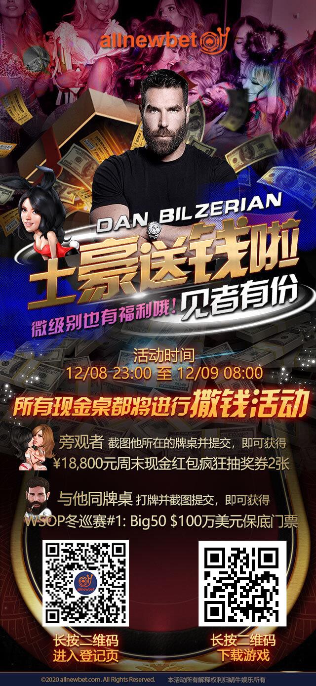 12月08日晚23:00 – 早8:00 将出现在所有的现金桌级别进行撒钱~
