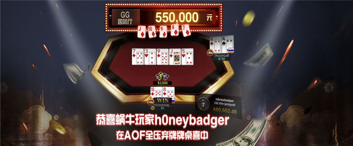 恭喜蜗牛玩家h0neybadger在AOF全压弃牌桌喜中550000元奖金
